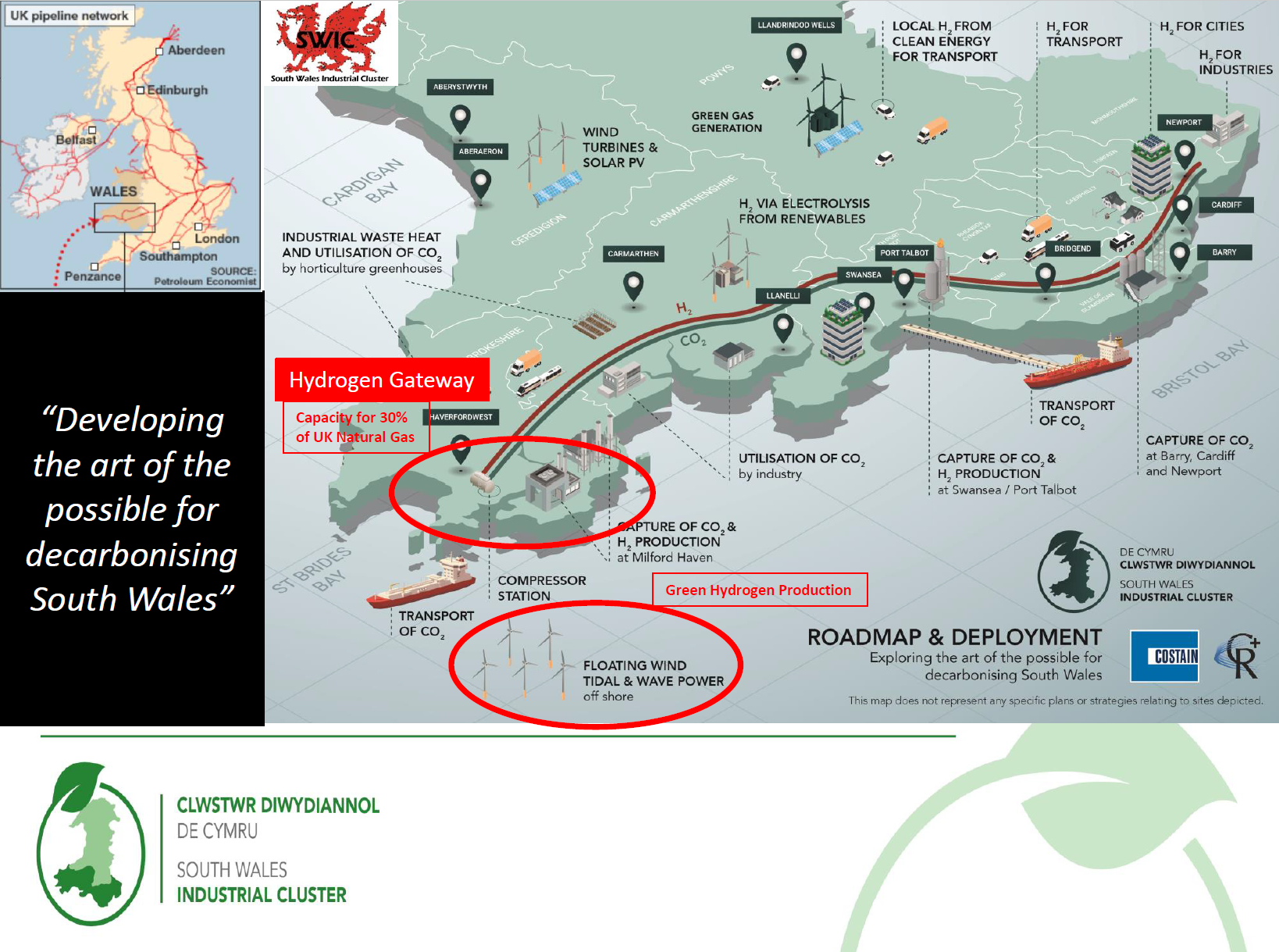 Mae Sir Benfro yn gartref i glwstwr ynni glân a bywiog, sef y sylfaen ar gyfer economi hydrogen y DU (Gweledigaeth Cyngor Sir Penfro a Phorthladd Aberdaugleddau, gyda chefnogaeth ORE Catapult a Chlwstwr Ynni'r Dyfodol Dyfrffordd Aberdaugleddau).